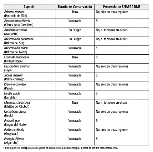 2. Especies de Flora leñosa en la Región Metropolitana de Santiago (RMS)