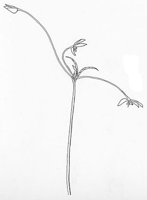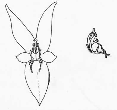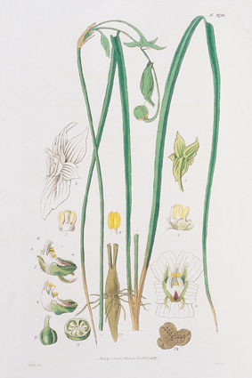 Dibujo Gilliesia graminea efectuado por Hooker, en Botanical Magazine, Lám. 2716, 1827.