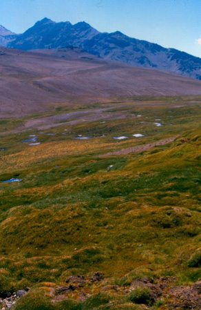 Vega de juncáceas en el paso de Los Patos, 3300 m, 02-III-2001.