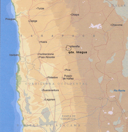 En el recuadro se muestra la ubicación de la quebrada de Imagua (20º06'S, 69º15'O).