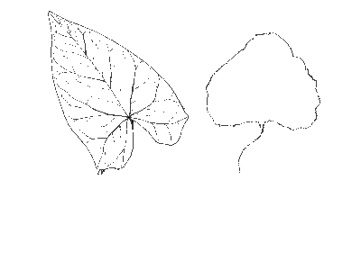 Figura 3. Hojas de Calystegia en Chile. Izq. Calystegia sepium. Der. Calystegia tuguriorum.