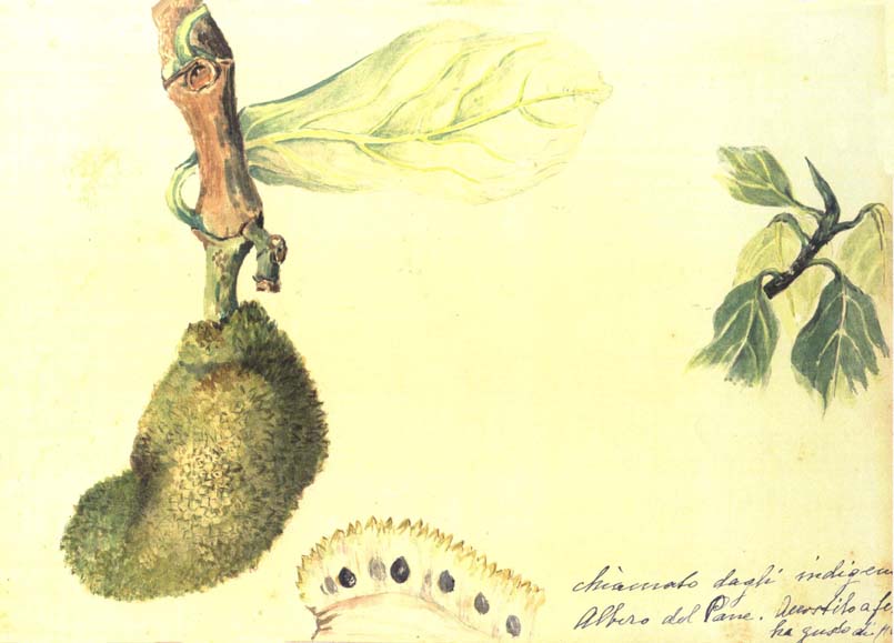 Moraceae: Artocarpus communis, árbol del pan.
