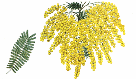 Figura 14. Acacia dealbata Link. Hoja (izq.); Rama florífera (der.).