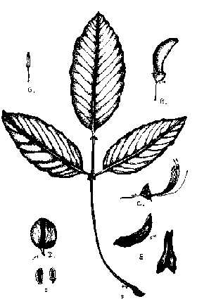 Figura 29. Erythrina falcata Benth.; A.Hoja (x 0.6); B. Flor (x 0.6); C. Cáliz y androceo ( x 0.6); D. Estandarte (x 0.6); E. Quilla (x 0.6); F. Alas (x 0.6); G. Estambre (x 0.6).