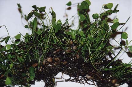 Marsilea mollis: Frondas con esporocarpos en la base ( Foto del autor).