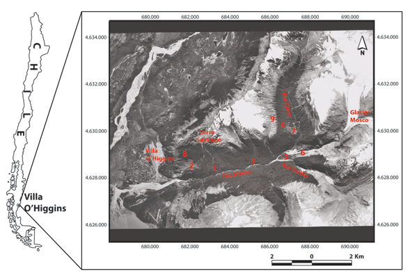 Los números corresponden a los puntos de muestreo representativos de