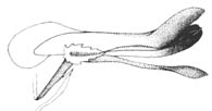 : pedicelo floral erguido, sépalos más estrechos que la corola.