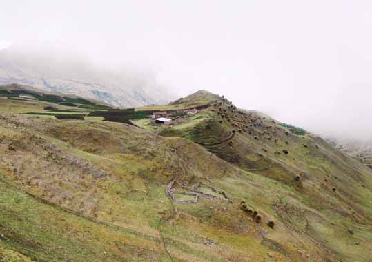 Foto 3. Se aprecian la ladera con los ejemplares de Puya raimondii