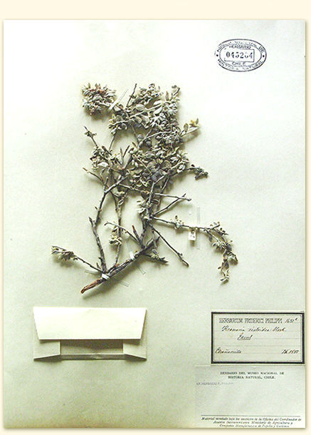 |  Arbusto de la familia Krameriaceae, prostrado, ramoso, con hojas sedoso-cenicientas, ovales. Flores solitarias o en corto número de color rojizo-vinoso a rosadas. Los frutos son cápsulas globosas, sedosas, cubiertas de espinas con punta retrorsa. Contiene una semilla de color rojo. La especie fue descrita por Hooker y Arnott en 1830. Este género es el único componente de esta familia, y sus especies presentan un curioso sistema de polinización, ya que los insectos son atraídos por la producción de lípidos en vez de néctar. Es americano con 15 especies desde el SO de EEUU hasta Chile (con dos especies). El nombre genérico es en honor de J. G. H. Kramer, médico militar austro-húngaro, quien quería realizar un Sistema de Plantas; el específico significa parecido a otro género Cistus. Esta especie endémica se distribuye ampliamente en nuestro país, desde el litoral de la región de Antofagasta (Paposo), hasta la precordillera de la región Metropolitana, más frecuente entre los ríos Huasco y Limarí. La causa de su inclusión como Vulnerable se debe a que fue intensamente explotada, porque su raíz rojiza posee ratania, un tanino que contiene ácido kramérico-tánico y rojo de Krameria, utilizados en medicina. Por otra parte su madera es utilizada como combustible en zonas semidesérticas donde el recurso es escaso, además de ser especie palatable para el ganado. También se usa su raíz para hacer una especie de licor y es usada en medicina popular. Los frutos se consumen crudos, tostados para café y confitados. Se encuentra protegida en el Paposo, probabemente en PN Llanos de Challe, en M.N. Pichasca y RN Las Chinchillas. |