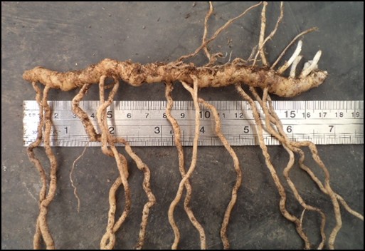 En el extremo derecho (apical) presenta brotes aéreos en desarrollo.