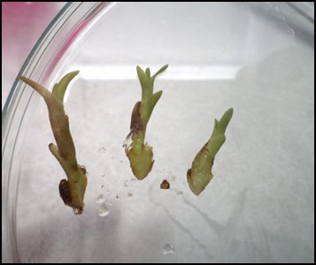 separación de los brotes al ser traspasados a medio fresco.