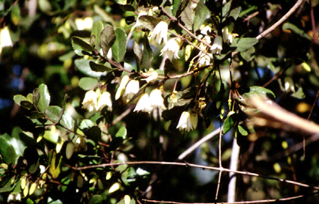 Crinodendron patagua (Elaeocarpaceae). Ramas con flores.