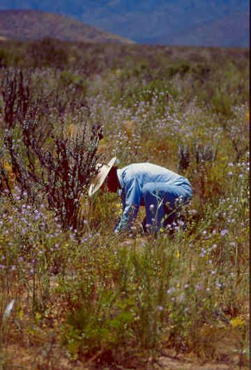 Centro Regional de Investigación INTIHUASI, Instituto de Investigaciones Agropecuarias, Vicuña, Chile: trabajo de colección de semillas en el campo para conservación en el banco de semillas.