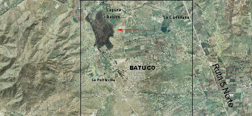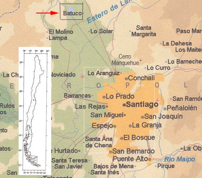 Vegetación del humedal de la laguna de Batuco: Situación geográfica (cuadrado negro, al norte)
