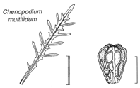 Chenopodium multifidum: hoja y sépalos.