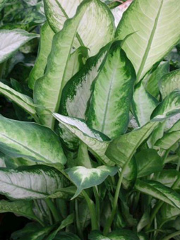 Araceae: Diffenbachia picta. Especie ornamental (hojas), de interior.