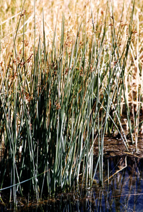 Juncaceae: Juncus arcticus. Hierba perenne, rizomatosa ("cachina"), especie nativa. Forma humedales, llamados "vegas" y "cachinales", en el norte y centro del país. Planta áfila, tallo de sección cilíndrica, inflorescencia "abierta" (compare con Scirpus americanus, Fig. 27).