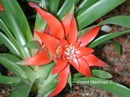 Bromeliaceae: Guzmania lingulata, especie ornamental. Se cultiva en interior.