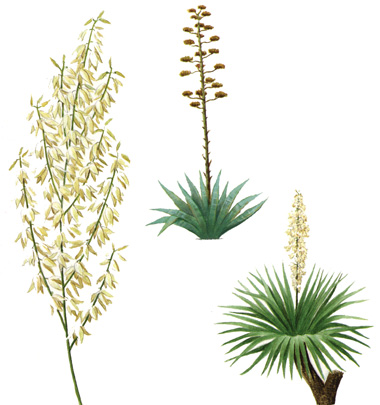 Abajo izq. y der. Yucca, género principalmente norteamericano,
