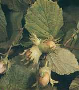 Betulaceae: Corylus avellana (avellano de Europa). Arbusto ornamental en Chile. Fruto y bráctea.