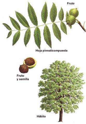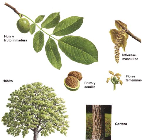 Juglans regia, el nogal. Especie alóctona, cultivada por sus semillas.