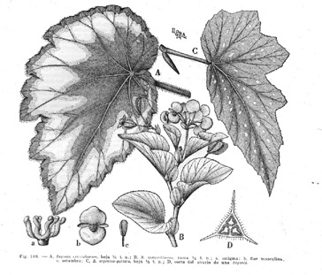 Begoniaceae: A. Begonia rex; hoja. B. Begonia semperflorens,