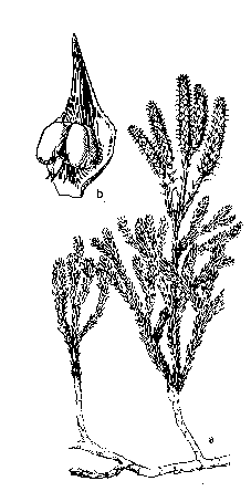 a. Planta con estróbilos. b. Esporofilo con esporangios.C. Hábito
