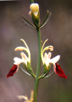Lamiaceae (Labiatae). Teucrium nudicaule, arbusto endémico del norte de Chile.