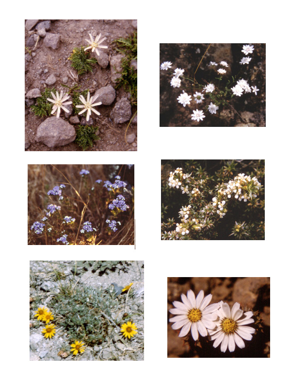 Abajo-izquierda, Chaetanthera chilensis. Abajo.derecha, Chaetanthera