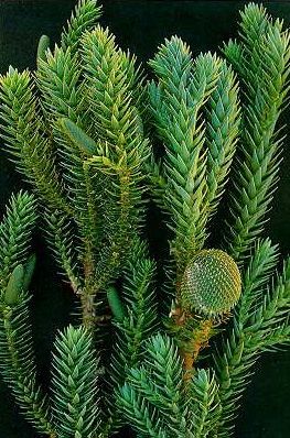 A. angustifolia: detalle de ramas y estróbilo femenino