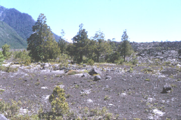 grupo de árboles creciendo sobre la escoria del volcán Llaima