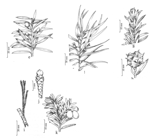 i-j. Lepidothamnus fonckii, "ciprés enano"; k. Prumnopitys