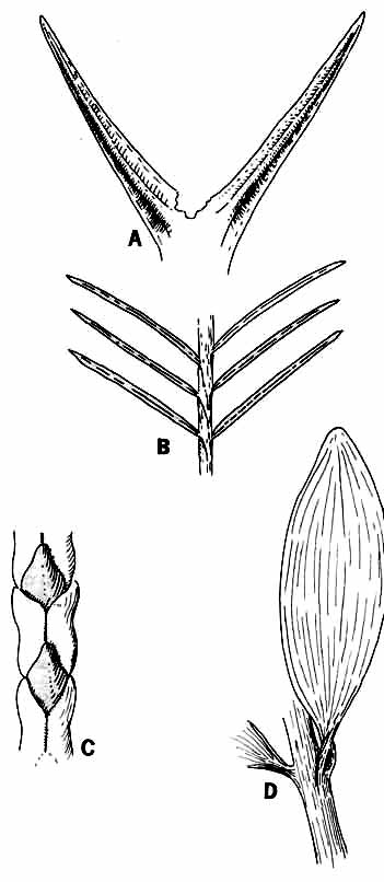 Hojas de Gimnospermas: a. aciculares; b. linear-aplanadas; c. escuamiformes; d. aplanadas-anchas.