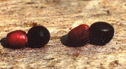 3. Izq. ramilla con dos semillas y epimacio carnoso basal (esquema). Der. semillas