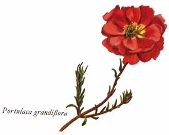Portulacaceae: Portulaca grandiflora, "portulaca". Especie exótica, ornamental. Hojas suculentas.
