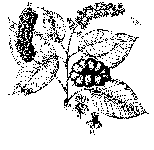A. Rama con inflorescencias y frutos. a. Flor masculina, b. Flor femenina.