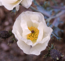 Argemone mexicana, una especie alóctona, asilvestrada en Chile. Poco frecuente.