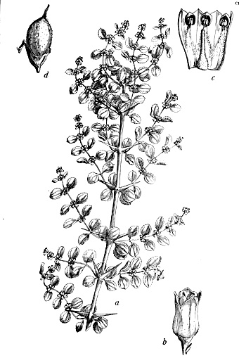 arbusto áfilo, nativo.