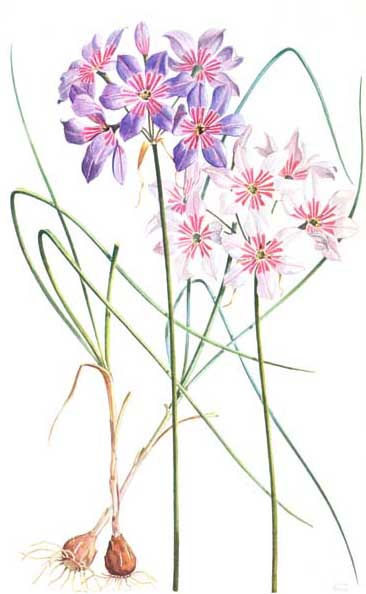 Bulbosa; hojas lineares, angostas; flores en umbela, azules o purpúras,