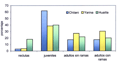 Se consideraron reclutas hasta 10 cm de alto, juveniles hasta 2 m de alto,