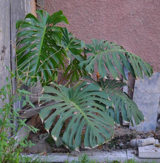 Monstera deliciosa Liebm. Cultivada en Chile. Hojas fenestradas.