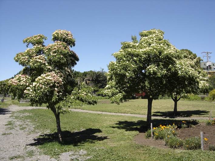 Observaciones: de follaje persistente en los climas cálidos y semi-persistente en los más fríos. El fruto, se forma en el centro de una “flor” que en realidad son cuatro brácteas en forma de pétalo. Se recomienda como una especie adecuada para los climas costeros de clima suave. Tolera fríos poco intensos.