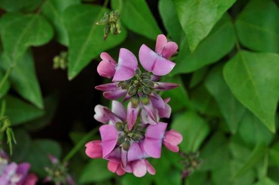 Dipogon lignosus cultivado en Chile, balneario de Los Molles. Detalle de las flores.