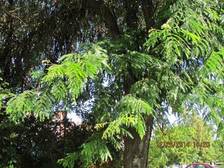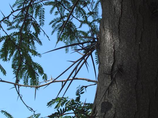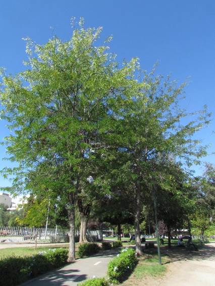 Gleditsia triacanthos L. Ejemplar en el parque Bustamente, Santiago de Chile.