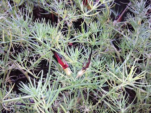 Lotus berthelotti en Chile. Aspecto de las hojas.