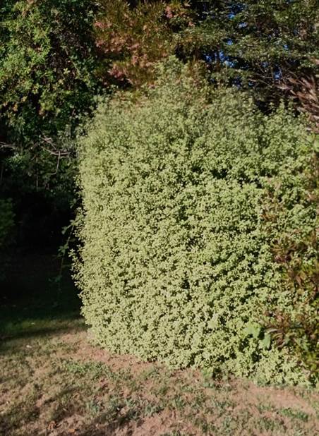Pittosporum tenuifolium en Chile: ejemplares podados para formar un seto. Puerto Varas.