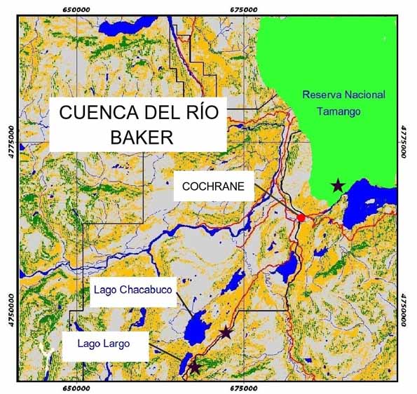 Nacional Tamango, lago Chacabuco y lago Largo ubicados en la cuenca del río