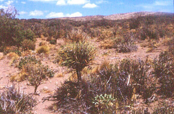 arbusto áfilo, al centro, mostrando la erosión eólica