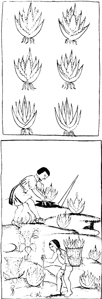 Agave americana en las culturas prehispánicas: cultivo prehispánico del agave Fuente:Codex Laurentianus Mediceus Palatinus, en Sahagún, 1979.