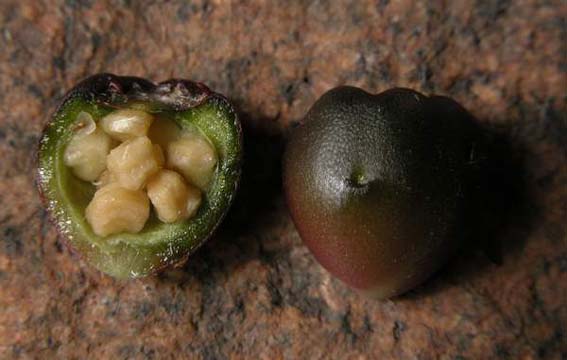 Maihueniopsis nigrispina (Cactaceae) en Chile: Fruto liso, de 1 cm de diámetro. Foto: A. Kirberg.